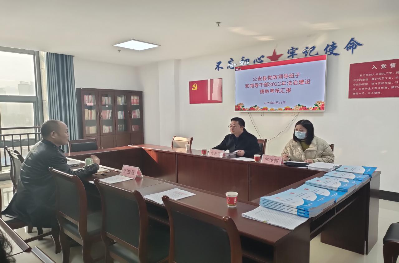 考核过程中,市委第五考核组全面依法治国考核小组听取了关于公安县委全面依法治县委员会办公室工作汇报,根据评分细则和规定对2022年度资料进行逐项核查,重点检阅了提高依法执政能力、加强法治政府建设、优化法治化营商环境、全力维护司法公正、推进法治社会建设等五项工作汇编资料,对公安县法治建设工作给予了充分肯定。考核组指出,要强化法治建设重要性认识,对于改革过程中的难点问题重点攻坚,进一步强化党政领导干部法治建设协调机制,提升法治宣传教育有效性和针对性,全面提升行政执法队伍法治素养,坚持用法治思维和法治方式推动县域经济发展。