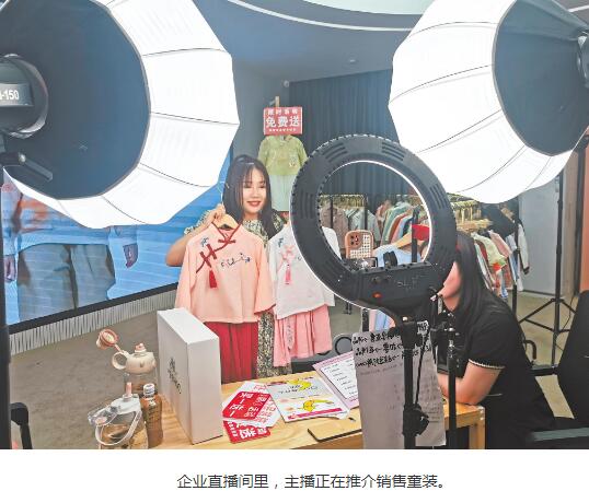在岑河镇,婴童装企业纷纷布局电商和直播渠道。湖北宜贝芽服饰有限公司副总经理许航介绍,2019年公司注册宜贝芽品牌,全部在电商平台销售,每天销量平均在5000件左右,去年销售收入达到1800万元。