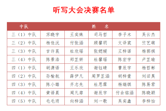 此次听写大会分为初赛和决赛两轮进行。11月18日,三、四年级各中队进行了第一轮热词角逐,各中队选拔出五名选手参加决赛。