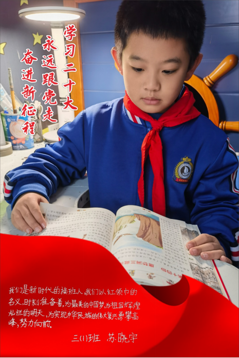党的二十大报告中的热词金句在安静的教室里回响,队员们静心聆听,工整书写,一笔一画都是那么神圣而专注。