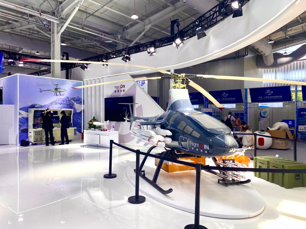 我国科技企业自主研发的无人直升机亮相服贸会。新华社记者 张漫子 摄