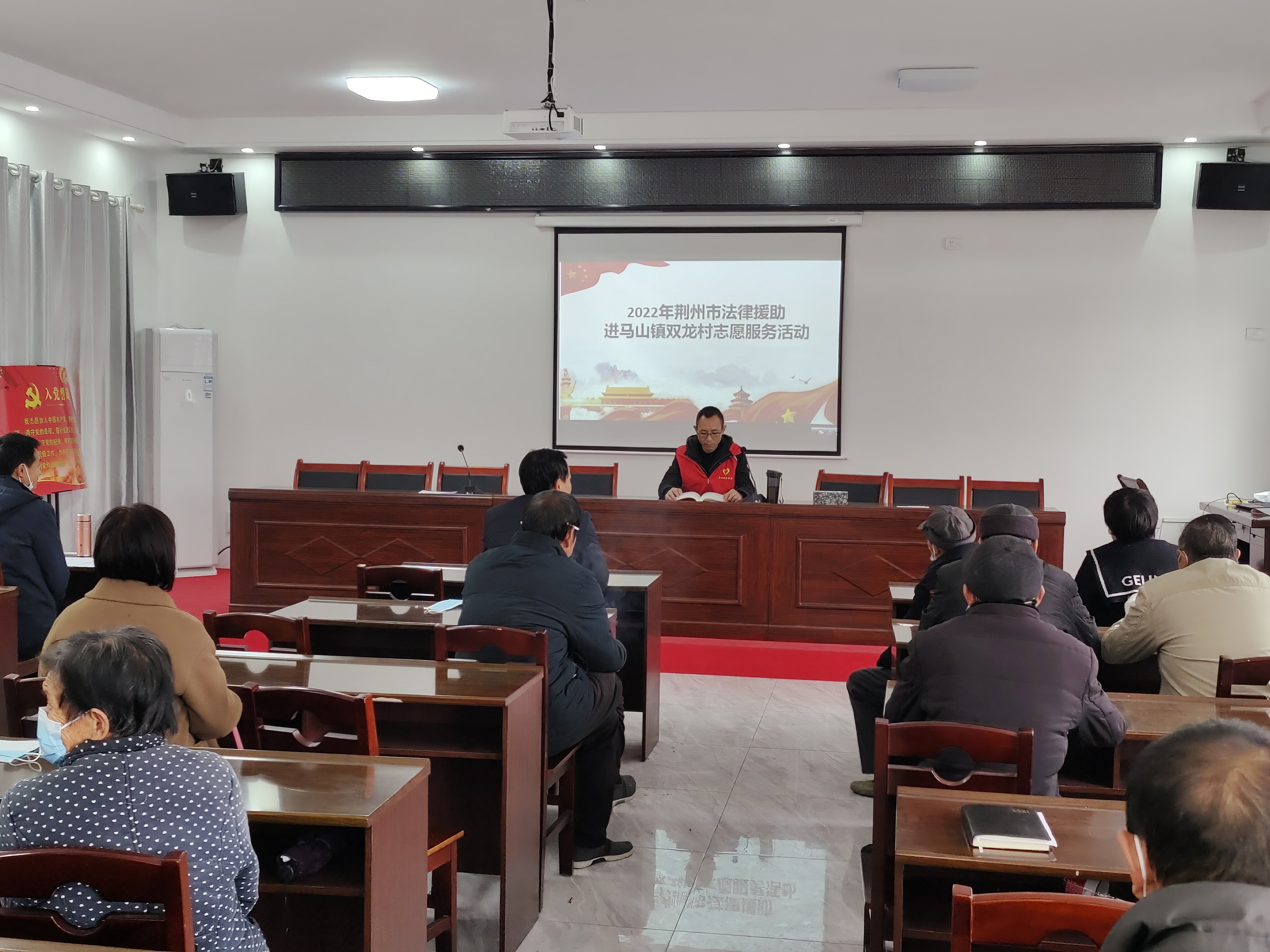 活动中,由荆州区司法局法律援助中心工作人员为乡镇村党员代表根据2022年1月实施的《中华人民共和国法律援助法》中相关条款,详细讲解了什么是法律援助,法律援助的形式有哪些?哪些事项可以申请法律援助?申请法律援助的条件、程序和需要携带的材料,为群众普及法律援助法常识。